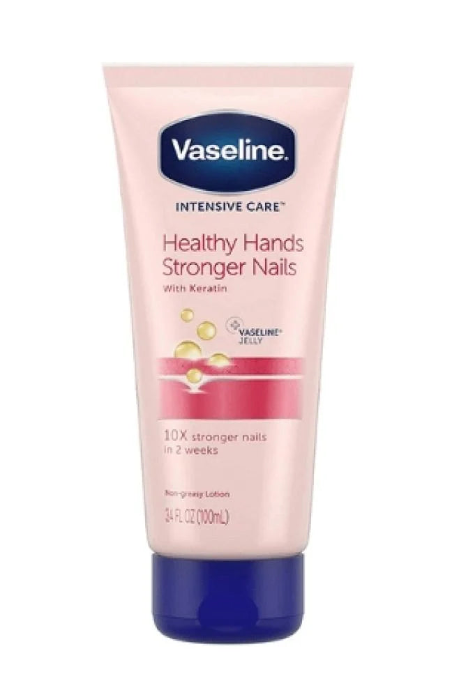 لوشن فازلين للعناية المركزة مُصمم خصيصًا لترطيب اليدين وتقوية الأظافر. غني بتركيبة فريدة مُعززة بالكيراتين، يُوفر ترطيبًا عميقًا وتغذيةً فائقة للبشرة الجافة والمتشققة، مع تقوية الأظافر حتى عشرة أضعاف خلال أسبوعين فقط مع الاستخدام المنتظم. سريع الامتصاص ولا يترك أي أثر دهني.